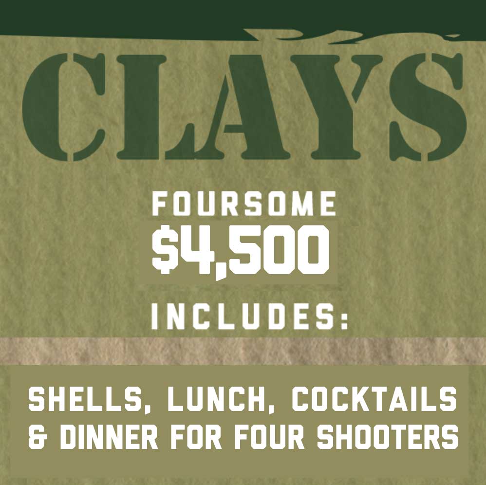 Includes: Shells, Lunch, Cocktails & Dinner for FOUR SHOOTERS